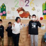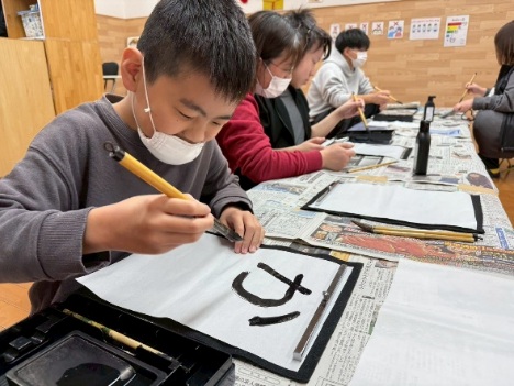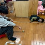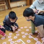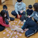 室内では絵合わせゲームや羽子板やけん玉、コマなどでお正月遊びを楽しんだり、書初をしたりしました!